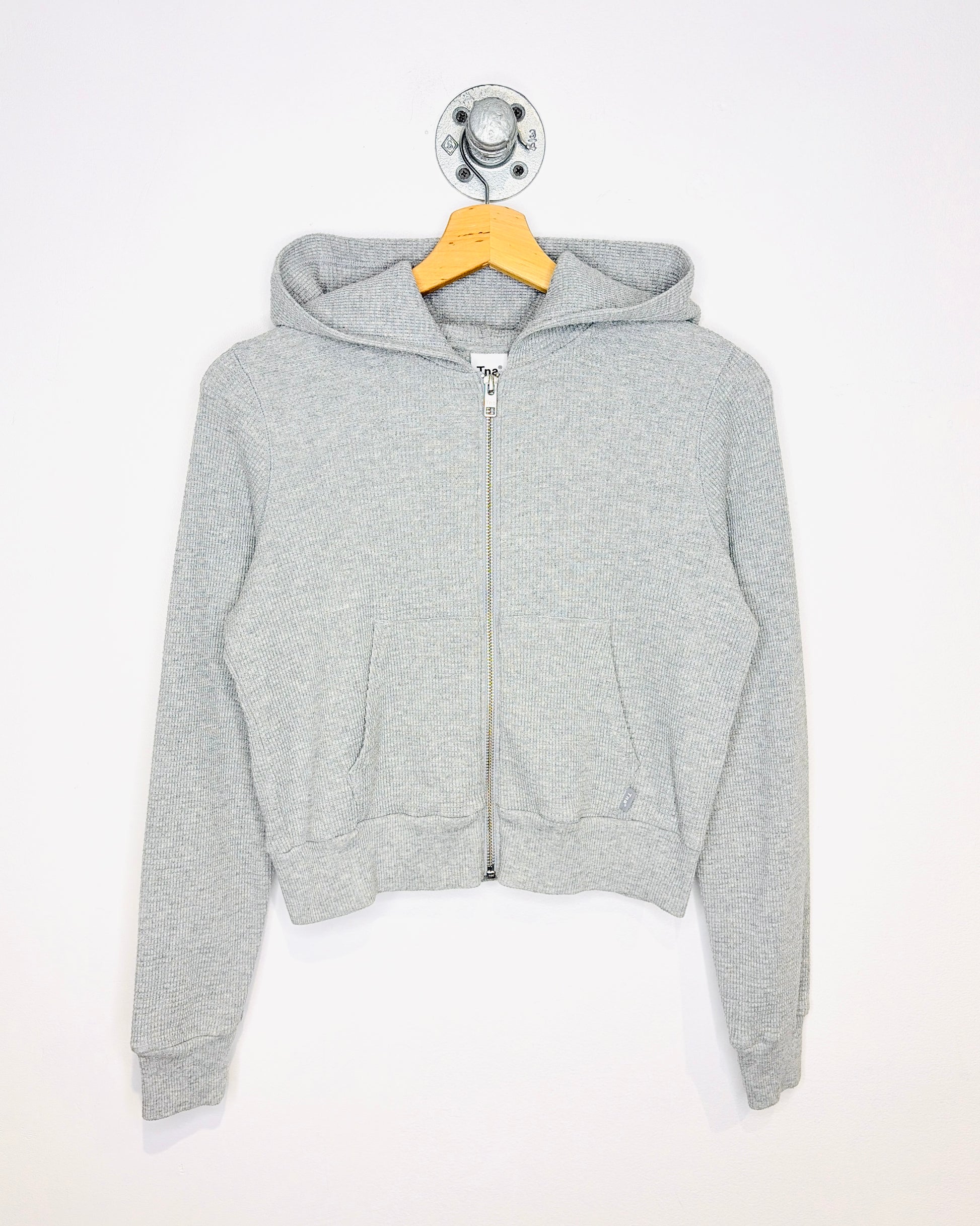 Women's TNA Cropped Grey Waffle Zip Up Hoodie