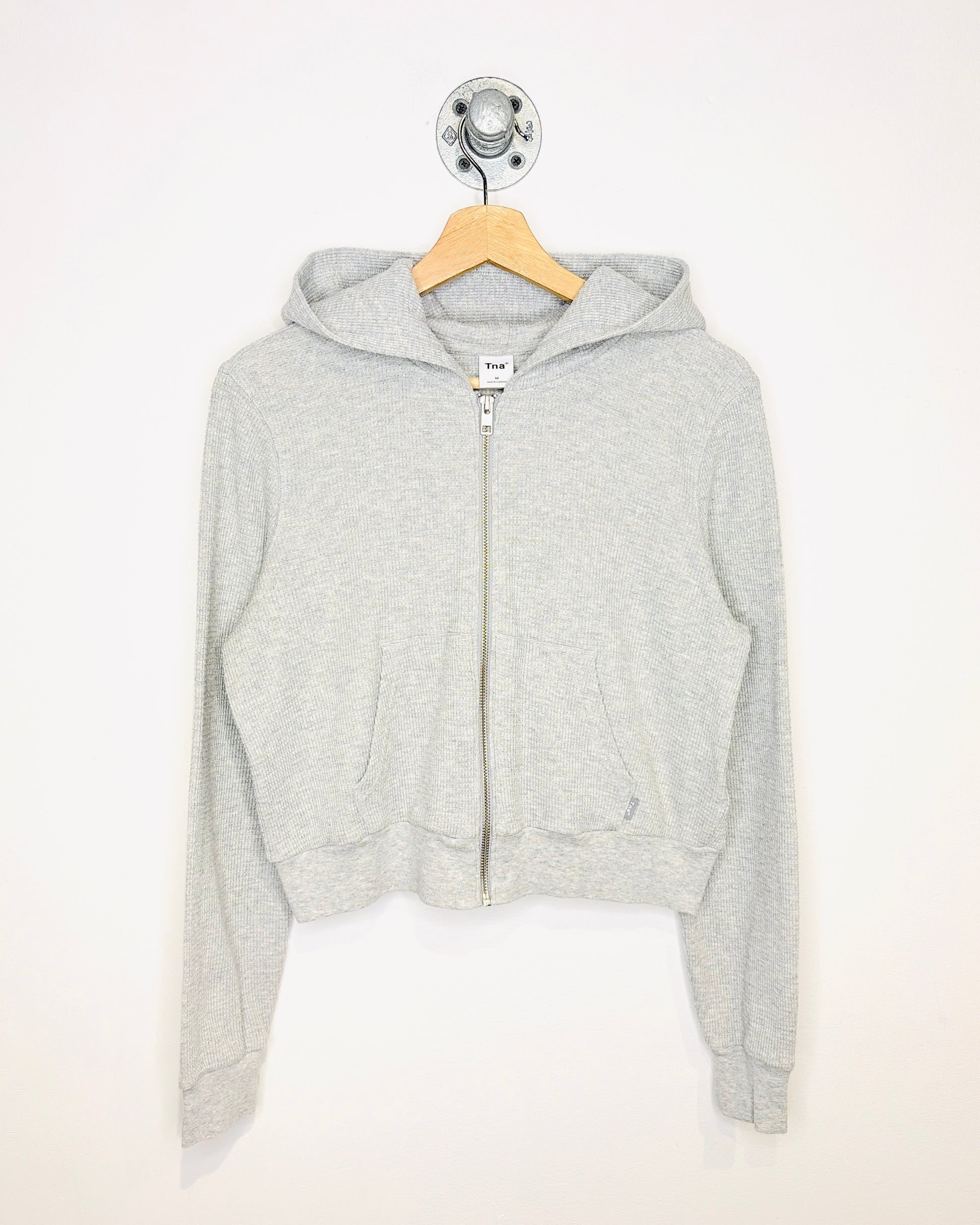 Women's TNA Cropped Light Grey Waffle Zip Up Hoodie