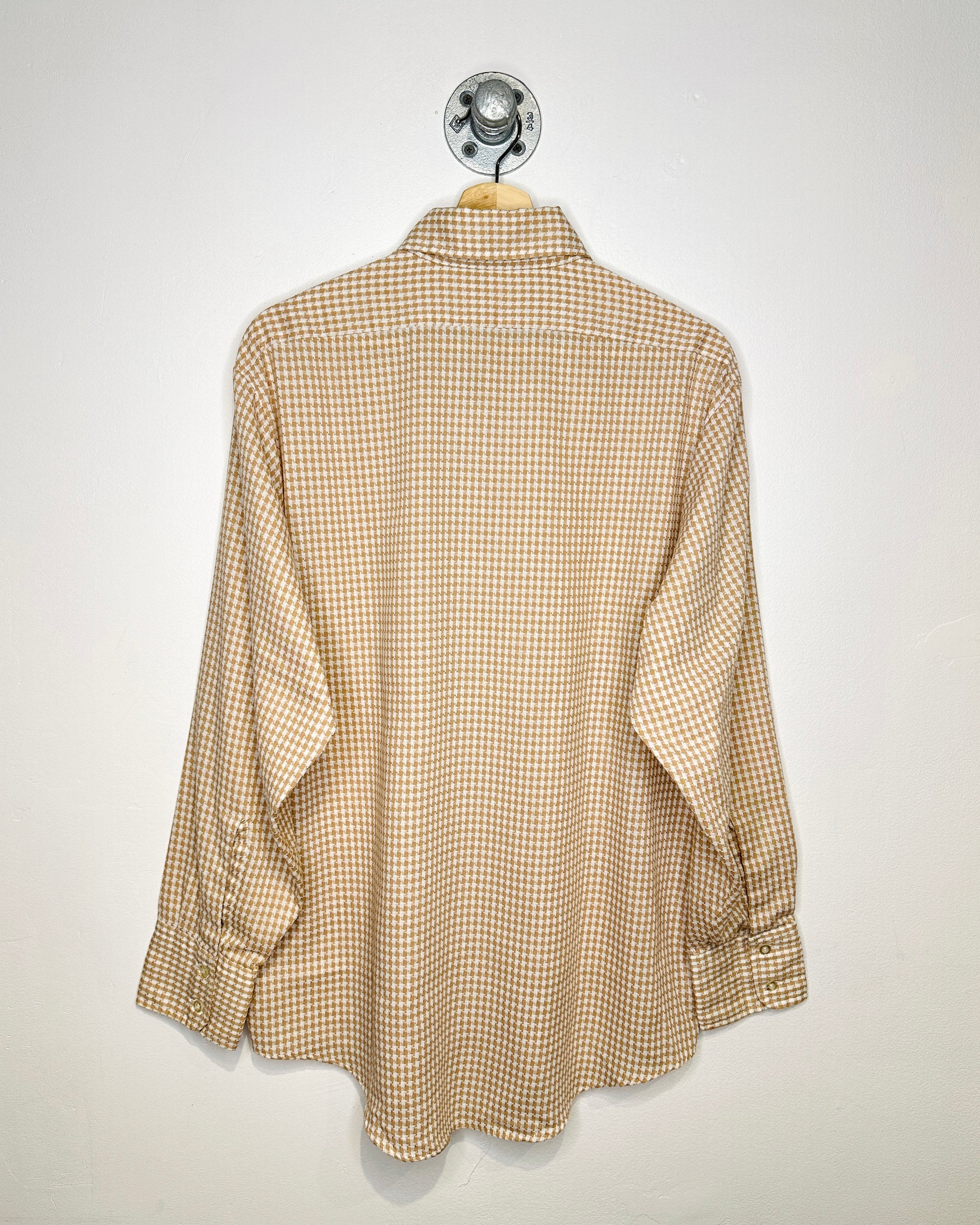 Vintage 1970s Houndstooth Earth Tone Button Up Shirt