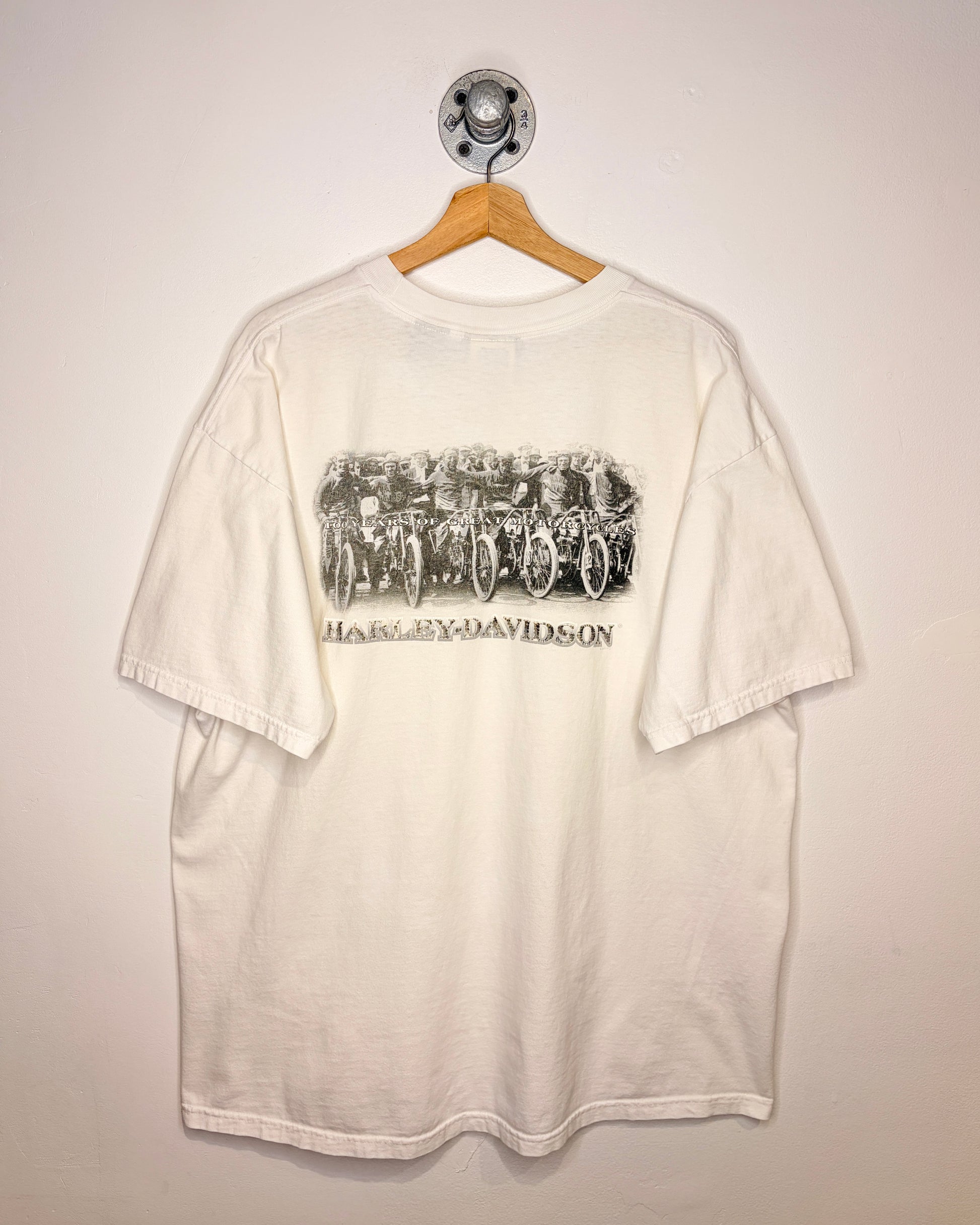 Vintage 2003 100 Years Of Harley Davidson White Pocket Tee Shirt