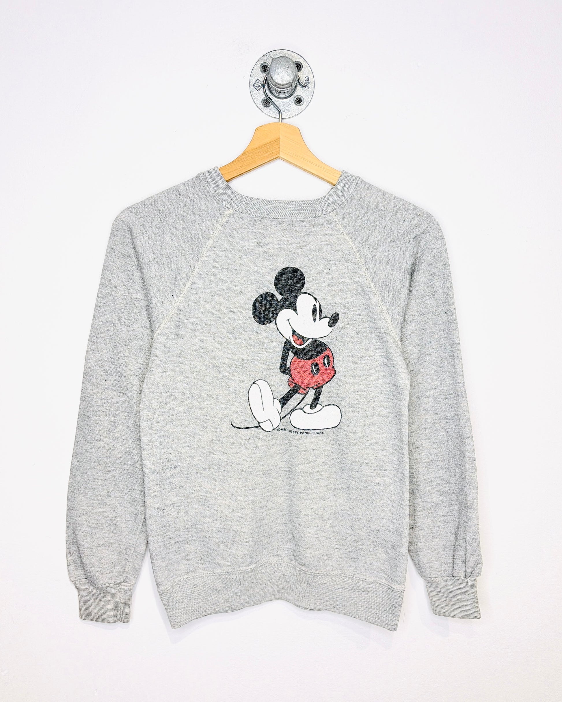 Vintage 80s Women's Disney Mickey Mouse Grey Crewneck Sweatshirt