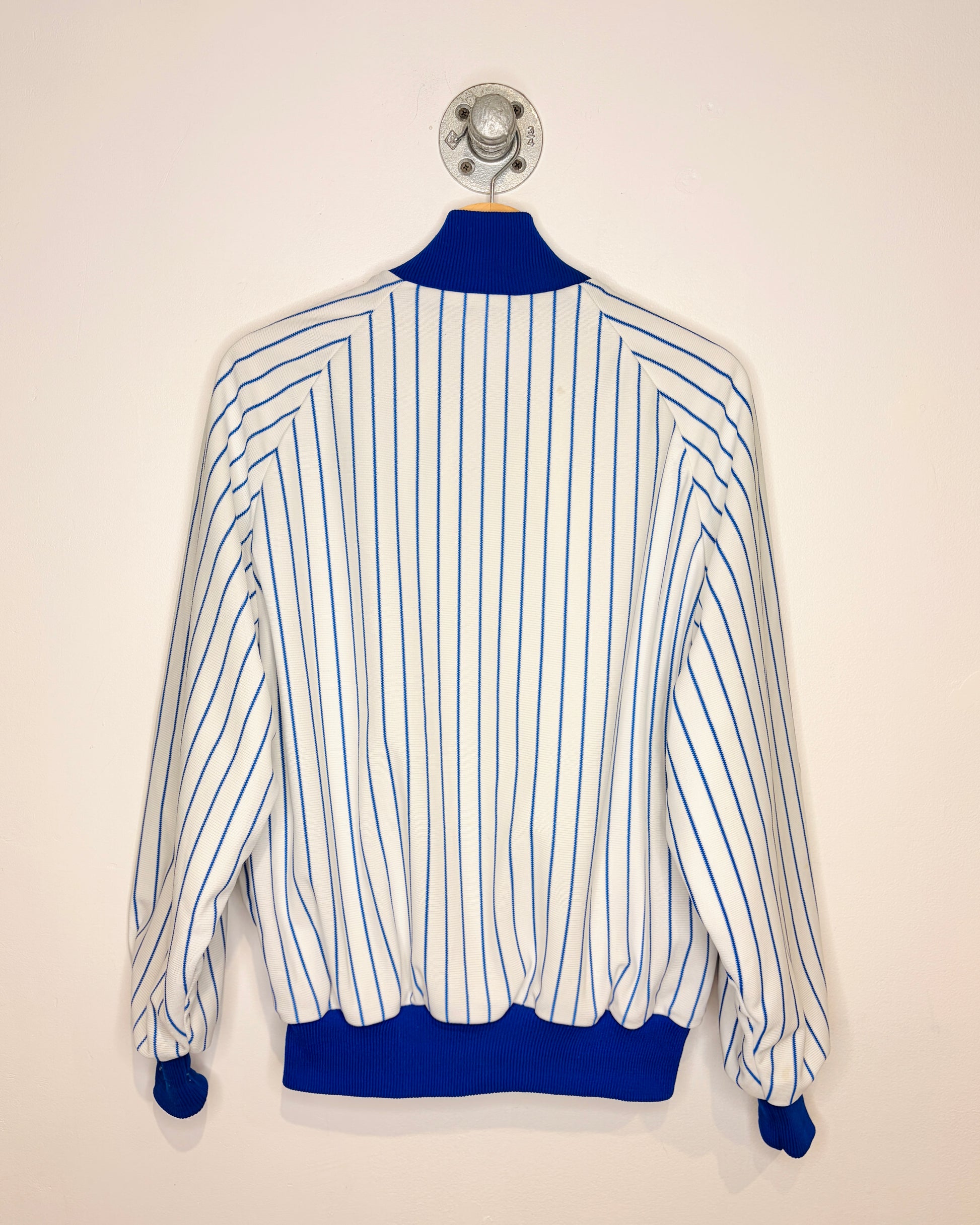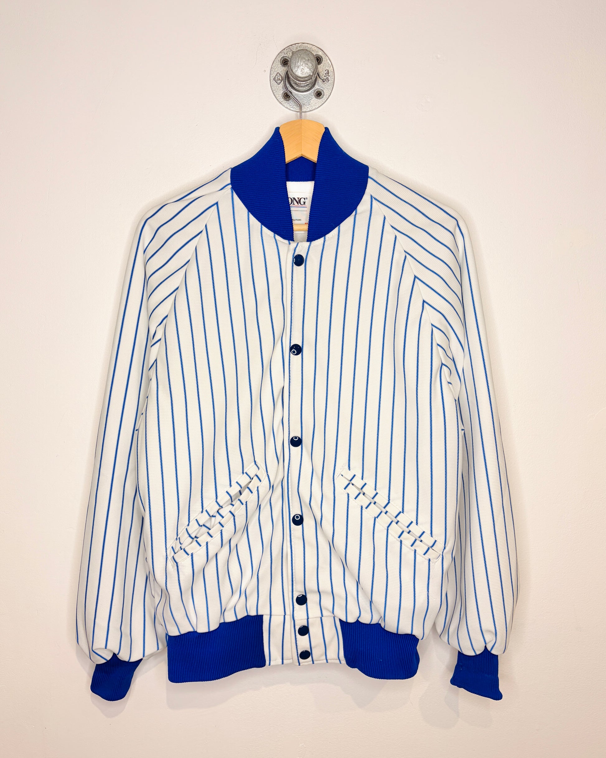 Vintage 90s DeLong Pinstriped White & Blue Varsity Jacket