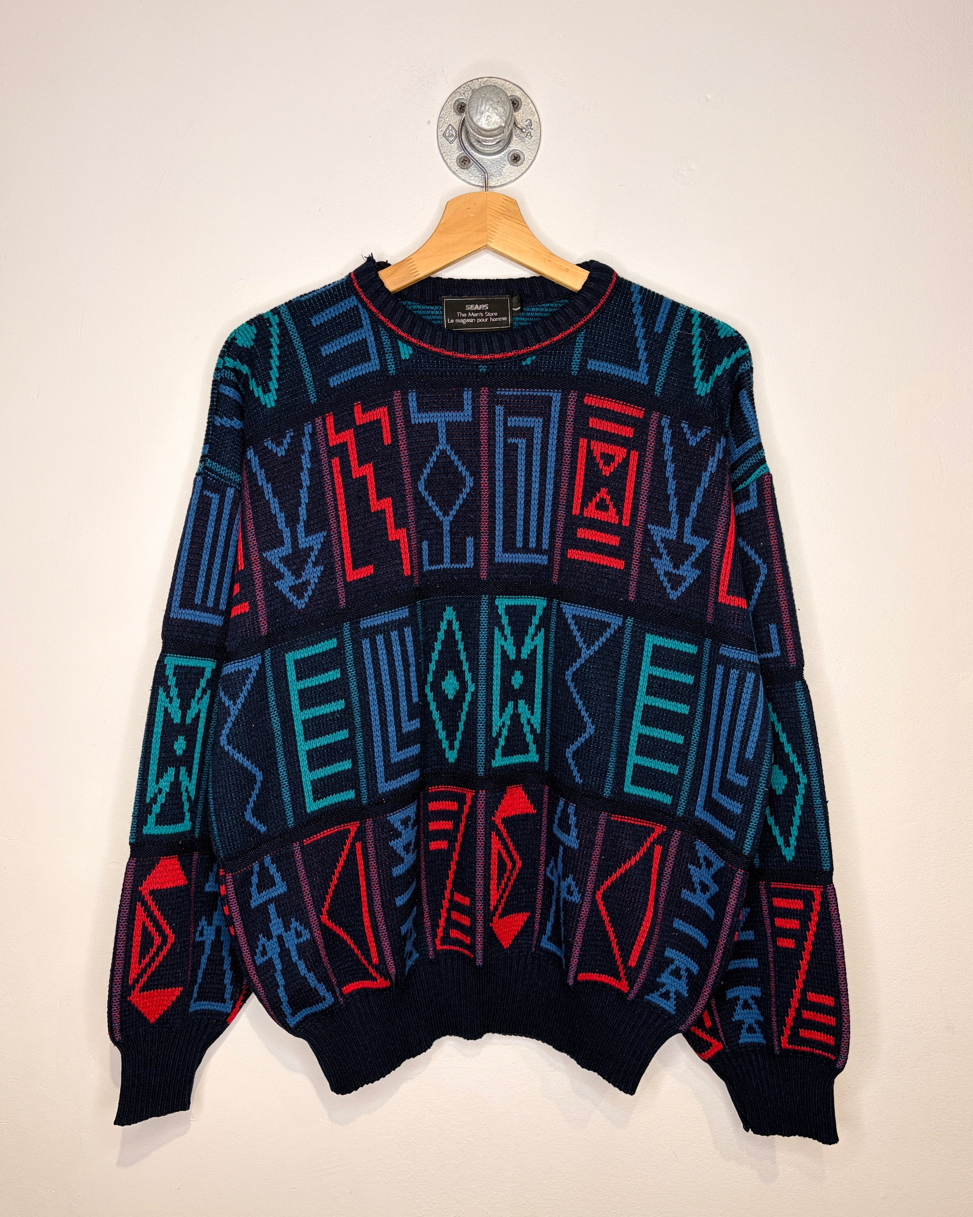 Vintage 90s Sears Navy Blue Abstract Knit Sweater