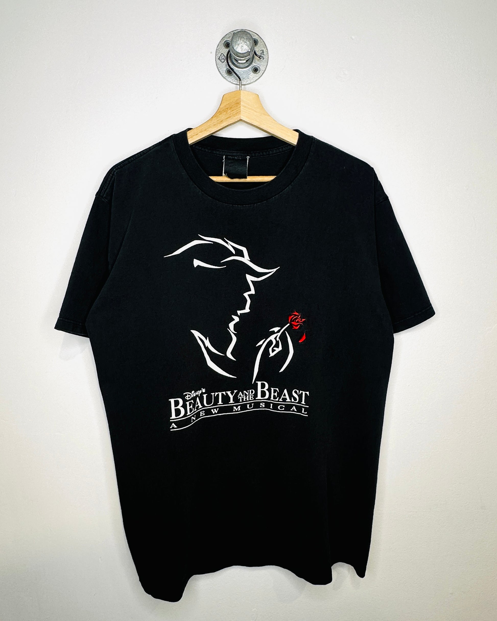 Vintage Disneys Beauty And The Beast Faded Black Tee Shirt